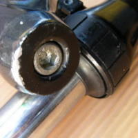 時々見かけます。たぶんトルクレンチ無しで交換されたのでしょう。