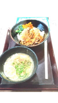 調子に乗ってフードコートで カルビ丼&肉うどん のセットなるものを注文