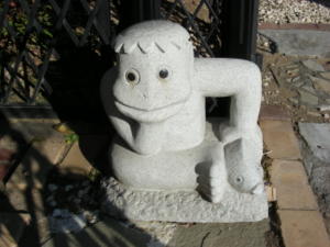 看板オブジェとして石でできたカッパさんを造園業者さんから購入。