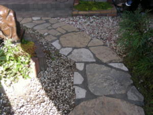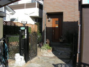写真ではよく解りませんが門扉と母屋の間は砂利を敷いたただけです。