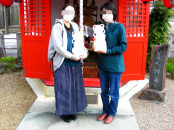 関係者様のご厚意で弁天様のレプリカ像を持っての撮影OK